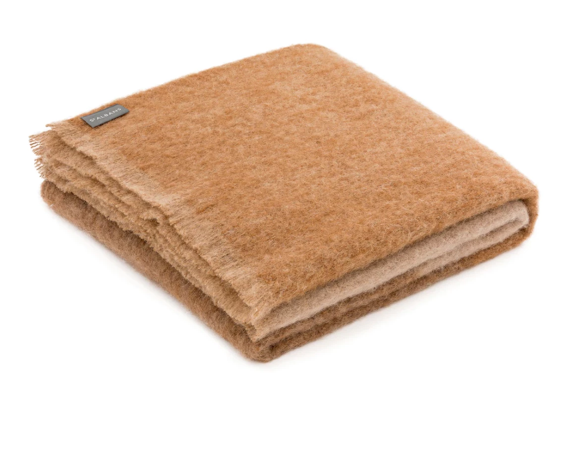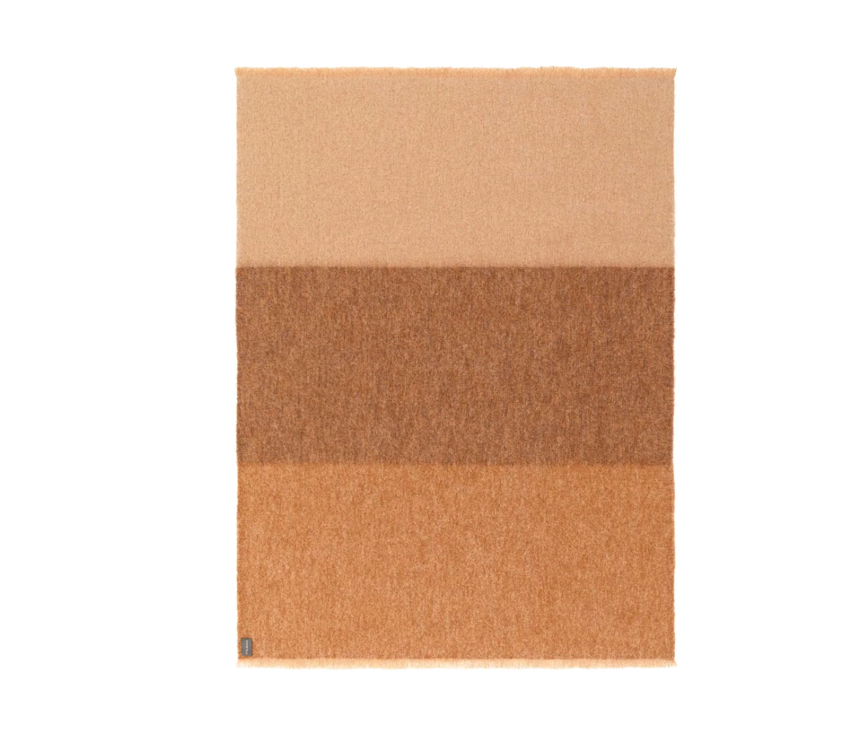 Our new contemporary Bronte Alpaca throw is a three block design with a marle finish. This soft caramel, brown, beige blend adds a modern twist to any living space.