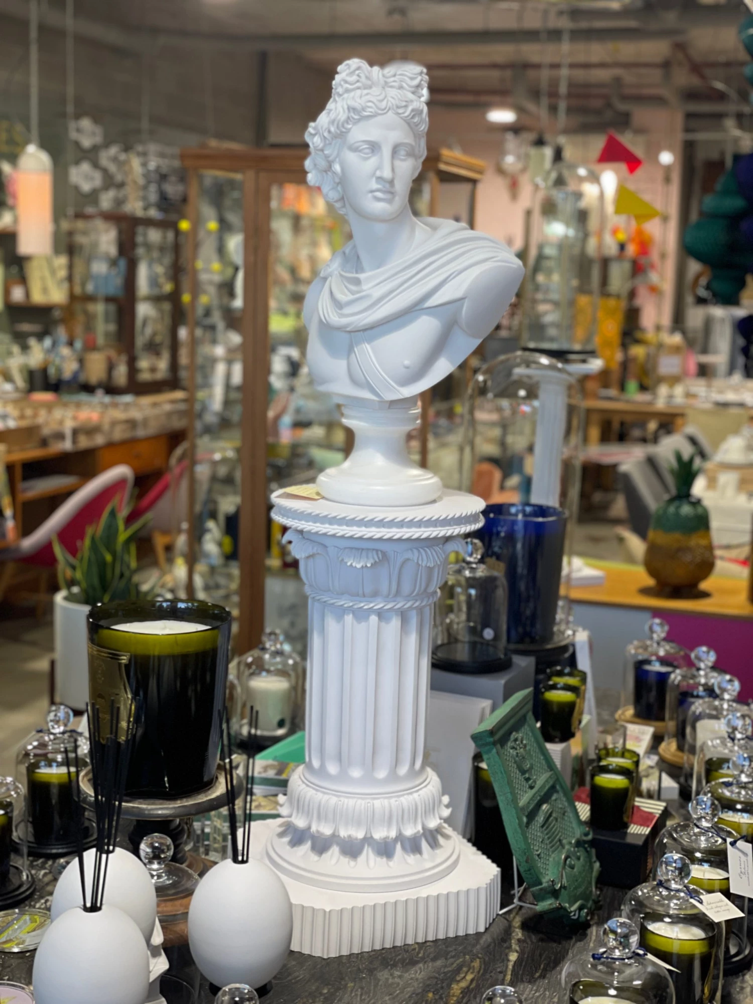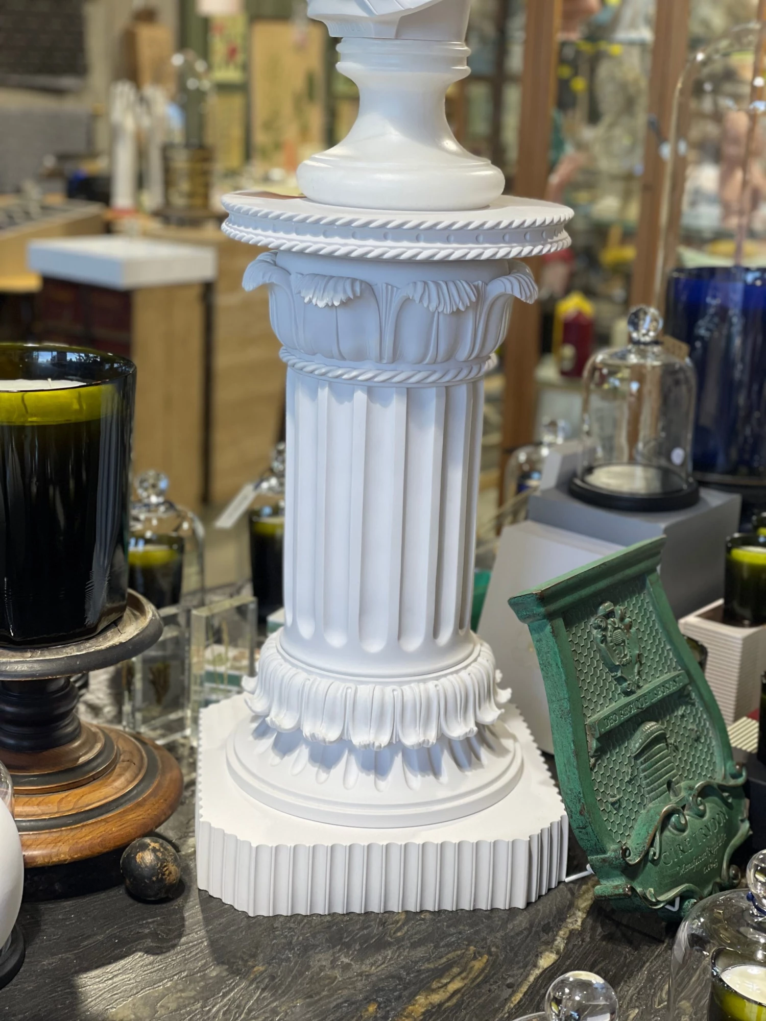 This decorative column is made from recomposed stone – white alabaster, marble powder and resin.