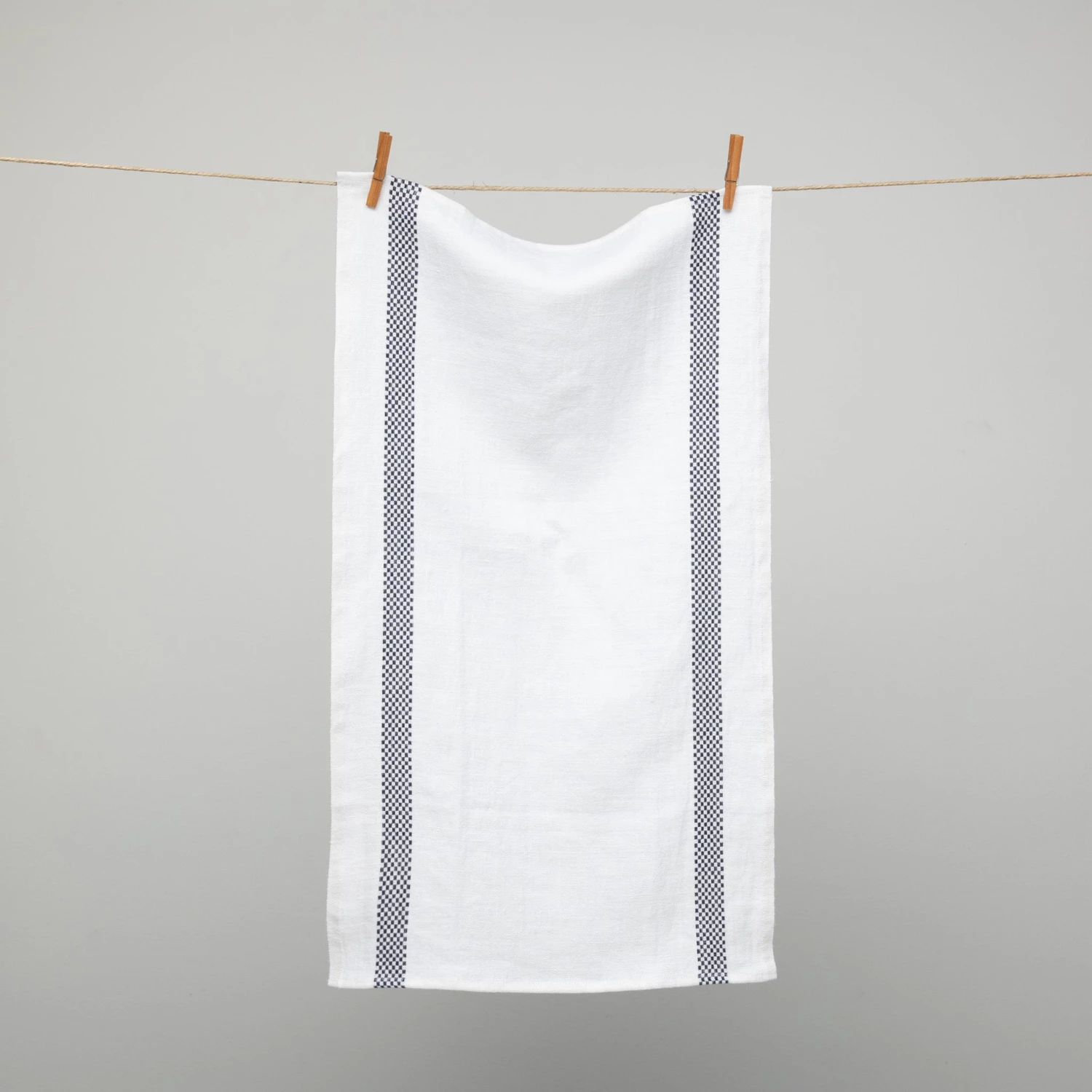 French tea towel in white with a black check stripe. Beautifully made, the perfect parisian addition to the kitchen.