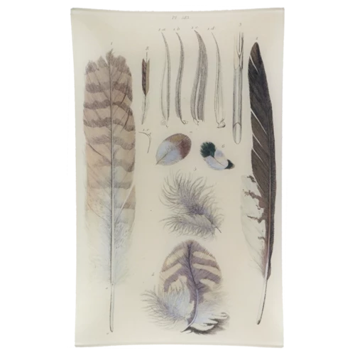 The Plumes decoupage wall tray is handmade in their New York studio using reproduced imagery from John Derian’s vast collection of antique and vintage prints. Trained artisans cut and collage the designs onto handblown glass.