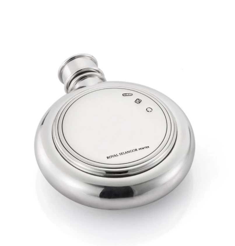 Traditional metalware mouldings, reminiscent of their architectural counterparts, embellish this handsome hip flask in brilliant finish pewter, based on a late 18th century example. A special gift for a special occasion – with plenty of room to personalise with engraving.