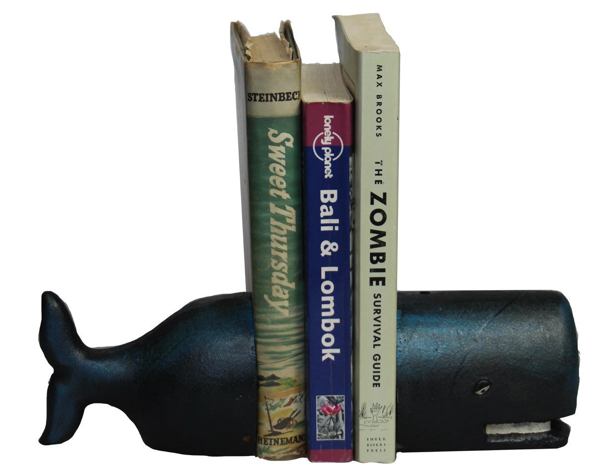 Make an ode to the seas with this pair of beautiful hand painted cast Iron whale bookends.