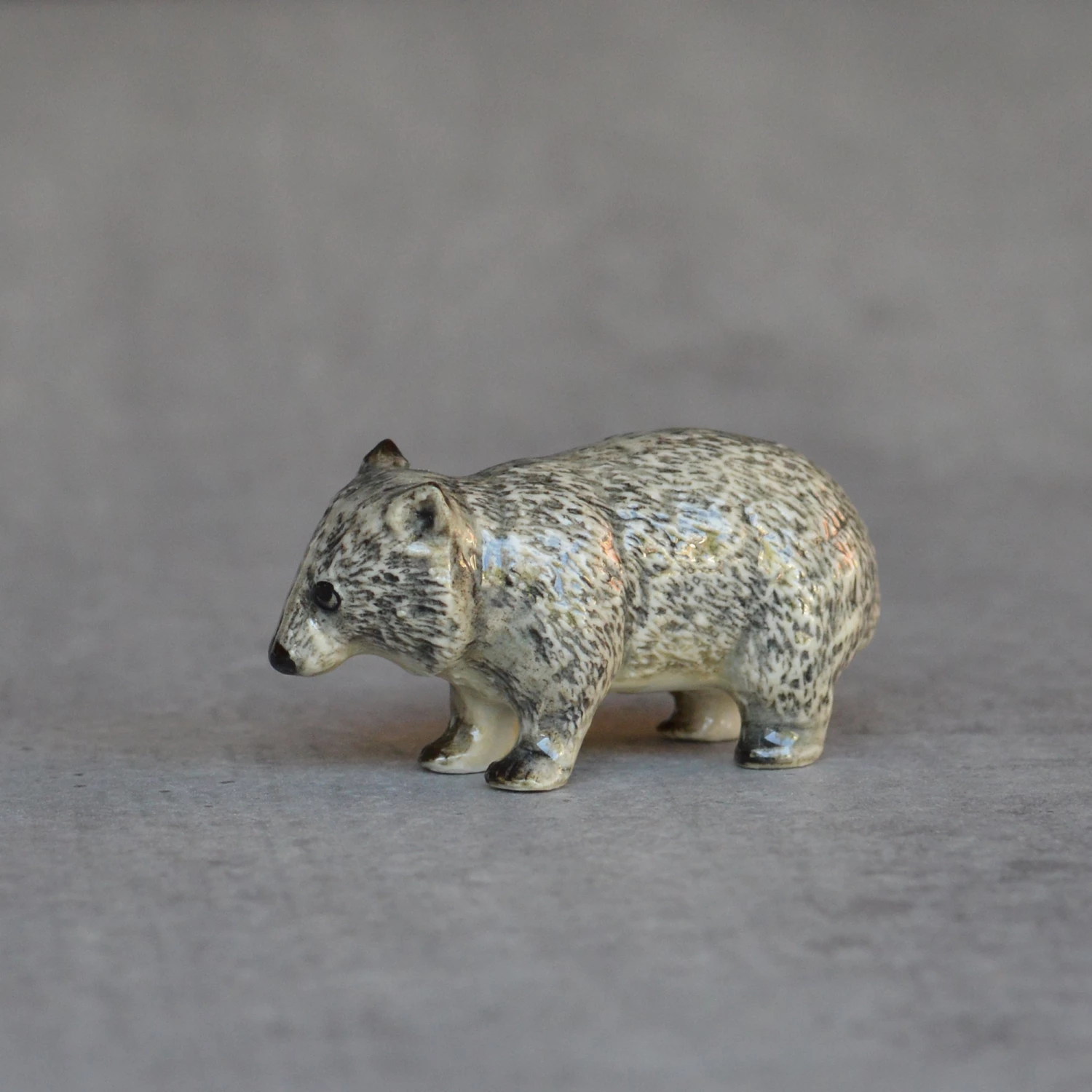 Cute little ceramic and hand painted miniature wombat figurine. Perfect for little gardens and shelves.
