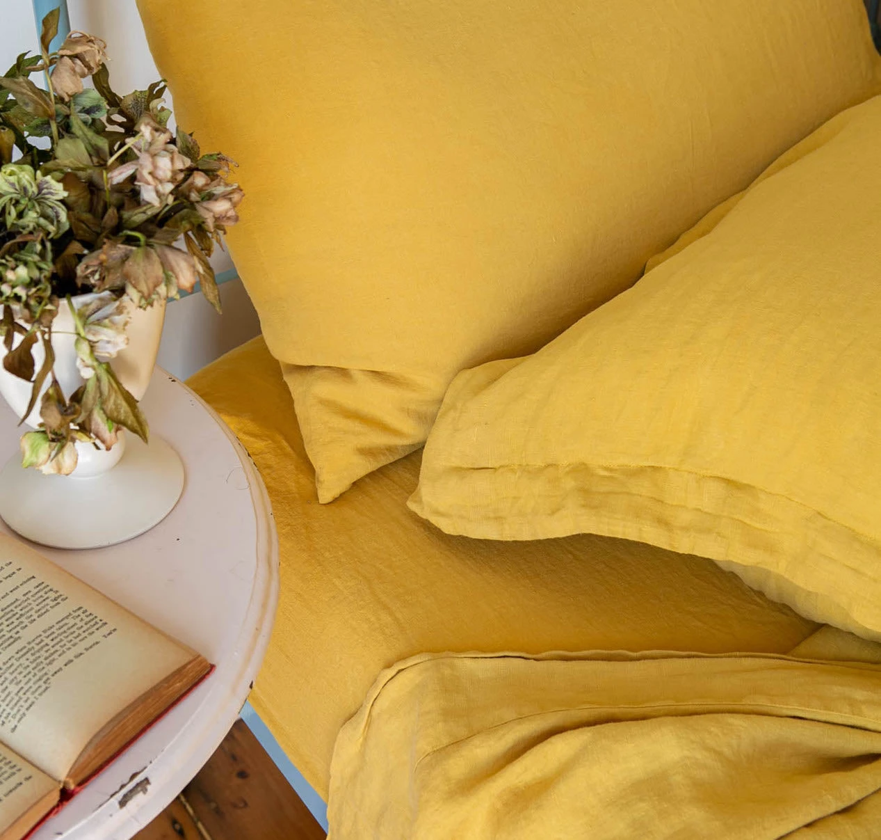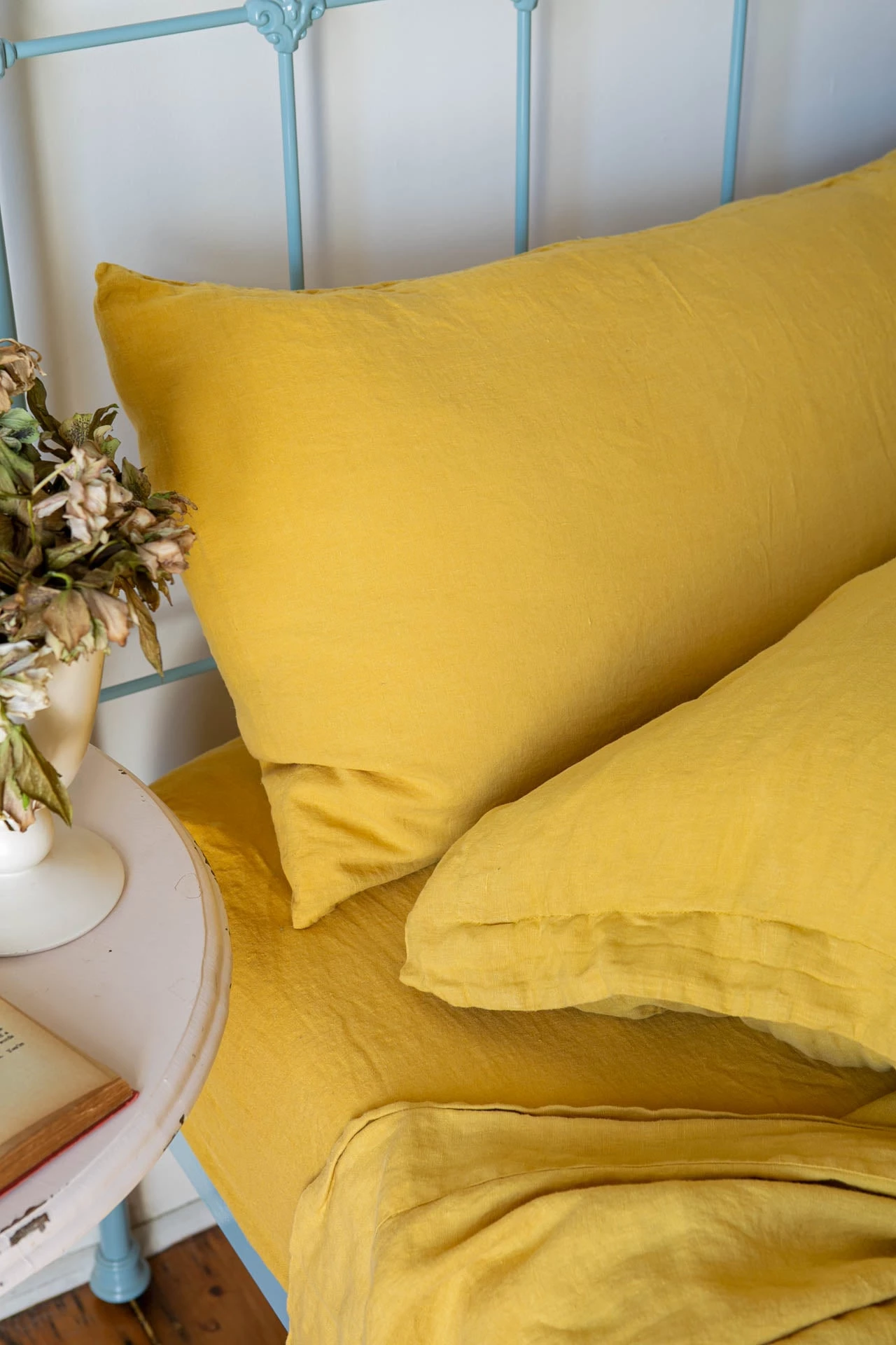 Each piece in our linen collection is stitched and then stone and soap washed, giving the bedding an incredible silky softness.