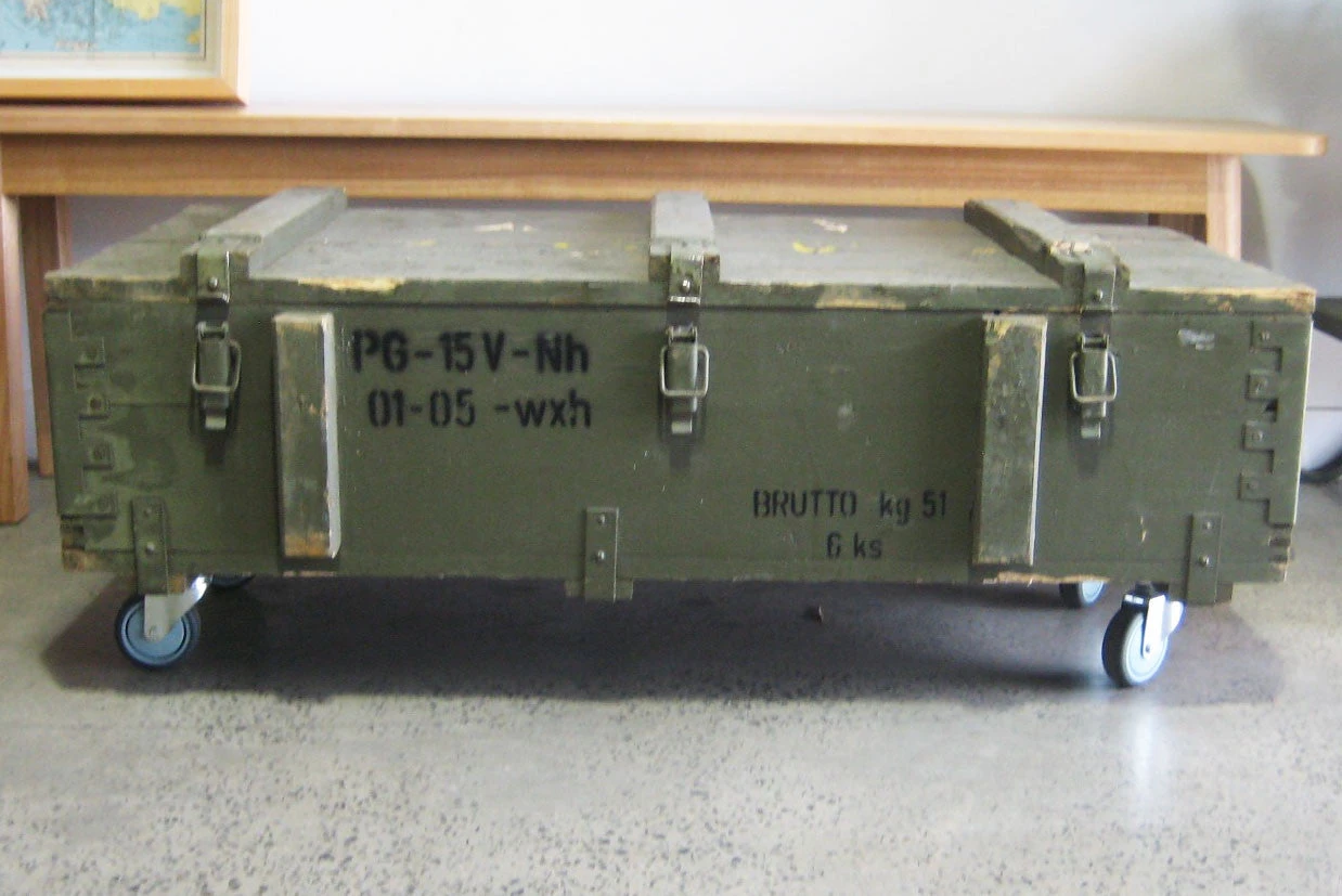 Authentic vintage army trunk with new castors, perfect for a feature coffee table.