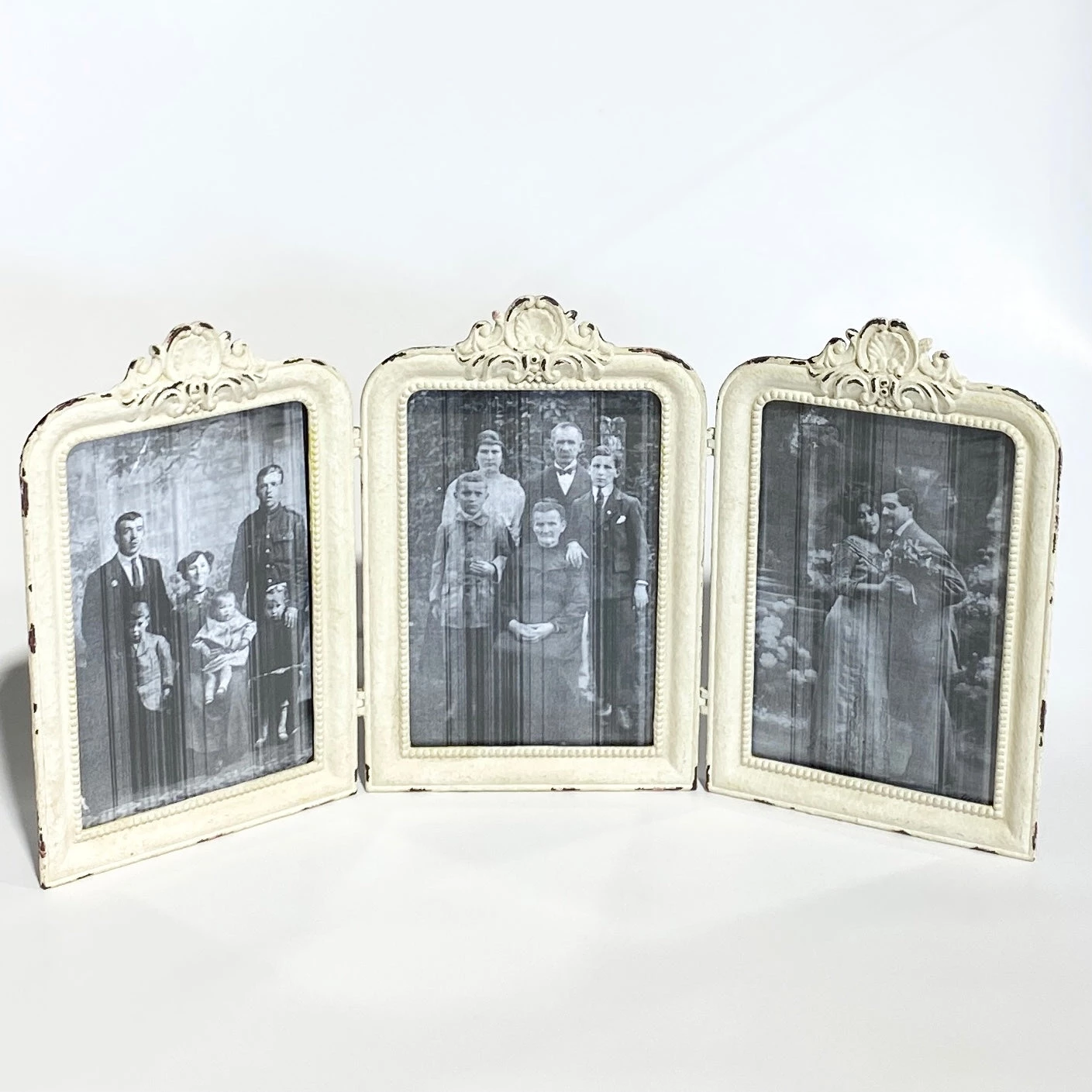 Antique ivory hinged triptych frame perfect for displaying family photos, get creative and display your photos rather than leaving them in your phone!