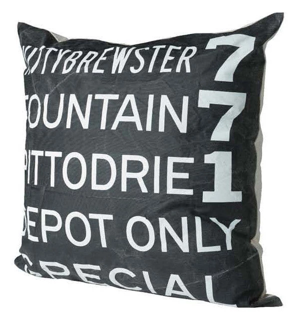 A wonderful statement cushion featuring printed a print based on a vintage subway sign.